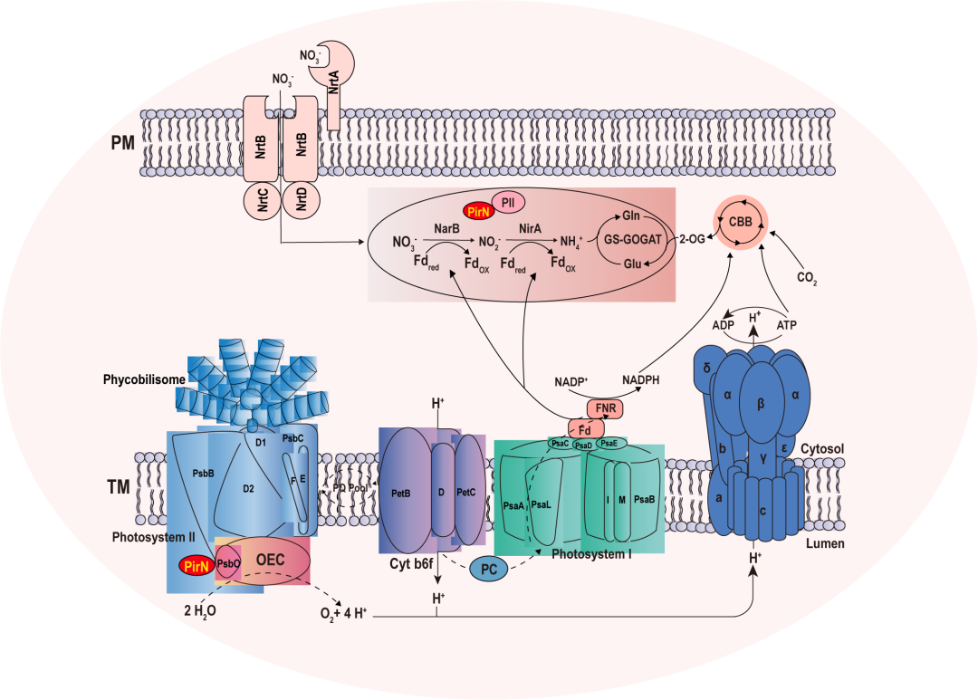 以PirN为核心节点、协同调控NarB与PsbO的硝酸盐特异性调控网络