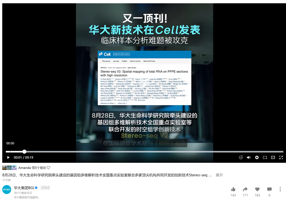 值得一提的是,中国科学家于8月22日在《科学》(Science)上发布了另一项技术——Stereo-cell,打破了传统单细胞测序的局限,实现了细胞多模态信息的“立体解析”。从Stereo-cell到Stereo-seq V2,中国科学家正在为全球生命科学研究提供原创性的“中国工具”和“中国方案”。